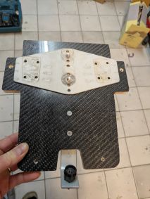 Die Stemmbretter fertigte ich aus eine Mehrschichtplatte, beidseitig mit Carbon laminiert an. Über die Schablone wurde die Form gefräst und anschließend die Löcher gebohrt. Anschließend die Fersenhalter gebohrt und auf 45 Grad gebogen und von Max kamen die Schuhe mit den Platten. Aus einer 3 mm Kunststoffplatte wurden mit der Schablone die Unterleger für die Ausleger geschnitten und verbohrt. Dazu noch aus einer 2 mm Aluplatte ebenfalls mit der Schablone die StrokeCoach T-Brakets hergestellt. Aus dem 3D Drucker kamen die NK Halter dazu.