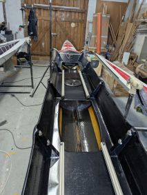 Von Max Schellenbacher wurde ein neues Schwert angefertigt, eingesetzt und ausgerichtet und zuletzt bekam das Boot noch neuen Carbon-Rollsitze verpasst.