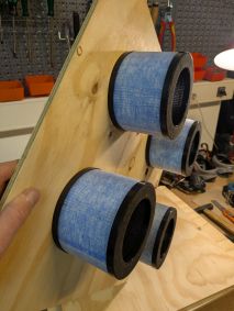 Nachdem nun die Reparaturarbeiten abgeschlossen waren, ging der Lackierer meines Vertrauens ans Werk. Die Werkstatt wurde auf 20 Grad geheizt und mit einem 950 m2 Radiallüfter, 2 m2 Filtervlies, 4 Pollenfilter, einem DN 125 Kanalrohr, 4 Schwerlastrollen und einer 9 mm Mehrschichtplatte entstand noch eine Filter und Absauganlage für die Werkstatt.